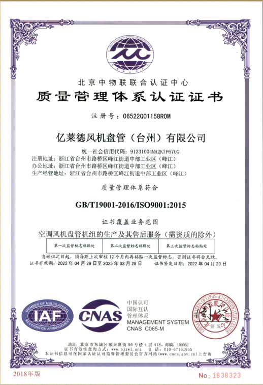 質量管理體系認證證書